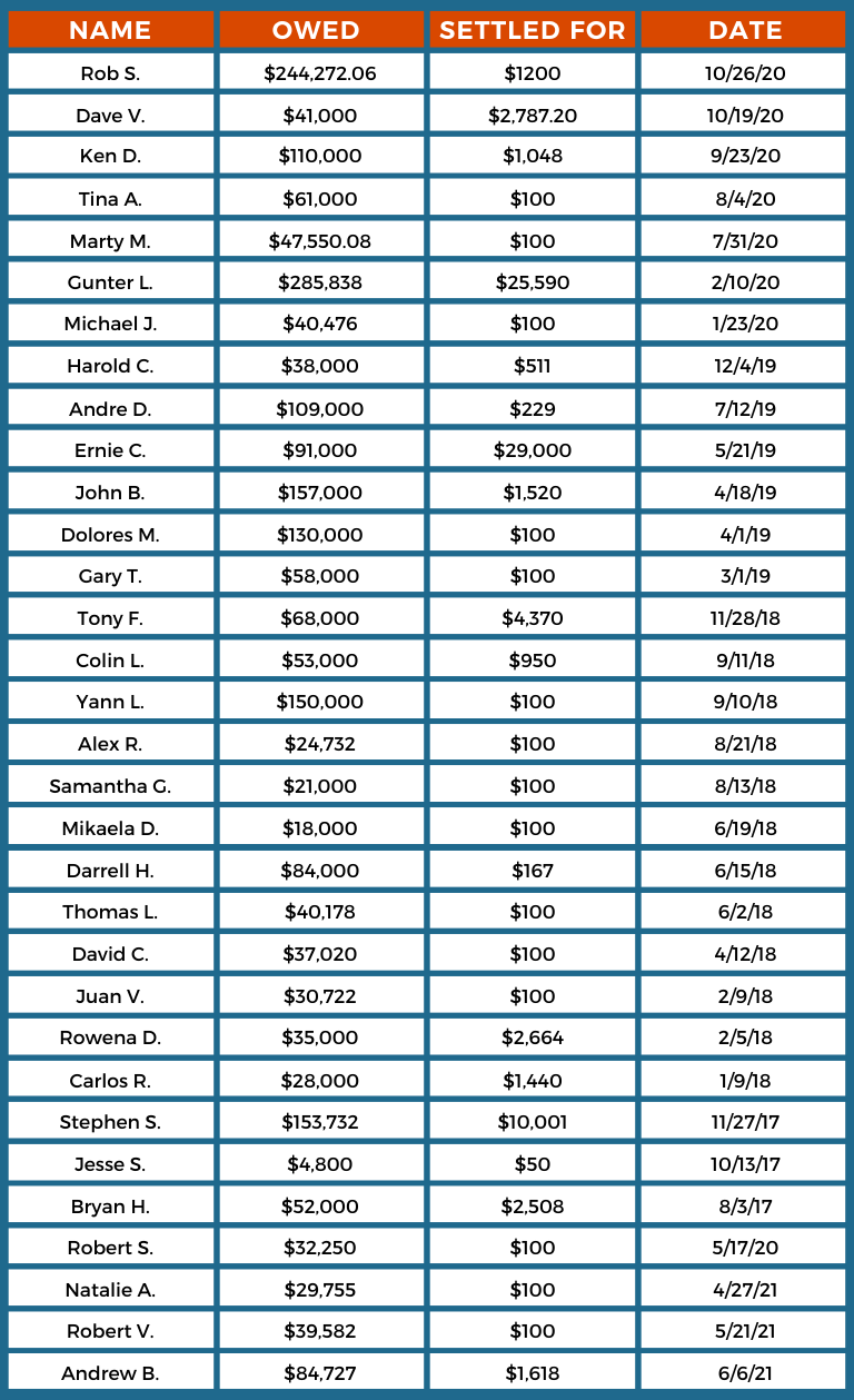 OUR AVERAGE SETTLEMENT IS LESS THAN 2% OF